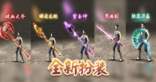 黑魂剑、铁花刃扇、破云龙枪、紫玉坤、破血大斧