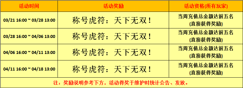 [活动奖励] 称号虎符:天下无双!