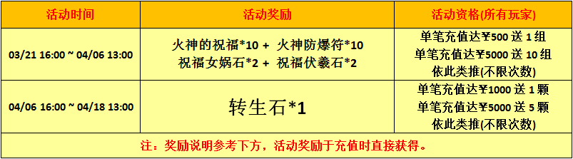 欢庆改版,单笔充值,送加持组、转生石,不限次数!